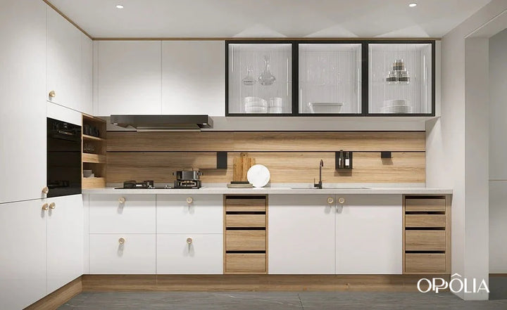 Airis Series White And Wood Two-Tone Modern Style Kitchen Cabinet - OBK24L02