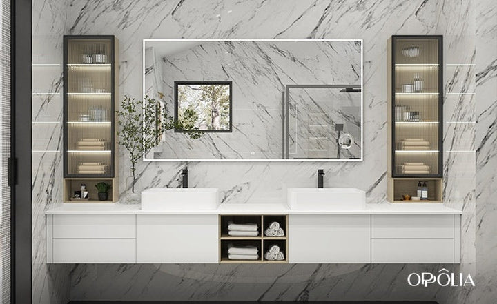 Floating Double Vanity White Bathroom Cabinets OBV22-TRA