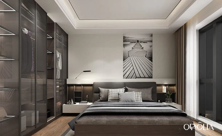 Gray Wood Fitted Wardrobe with Glass Doors OBW21-008